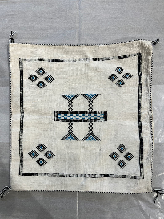 Coussin Berbère - Ecru/noir turquoise - 45 x 45 cm environ