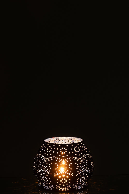 PHOTOPHORE CYLINDRE - metal/verre bleu small