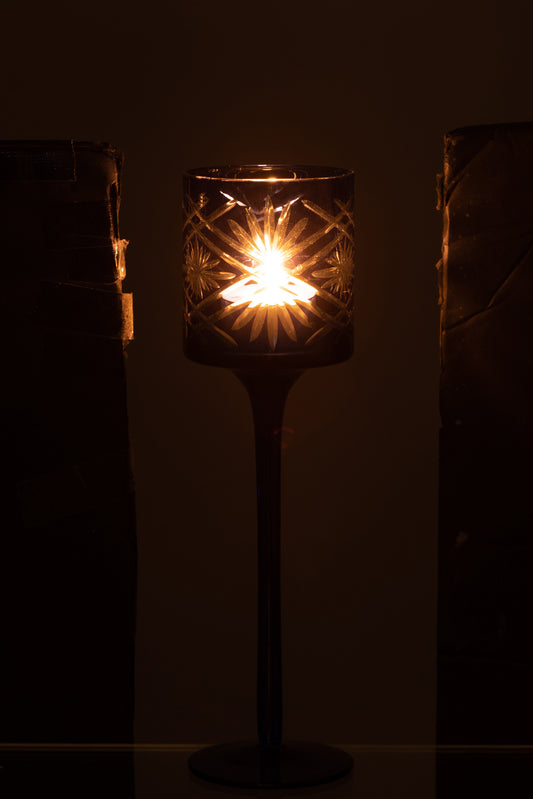 SANTORINI - Photophore Pied Verre Blanc - H 25 cm