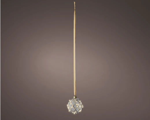 BOULE - blanc givré sur corde - D 14 cm