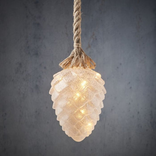 POMME DE PIN - blanc givré sur corde - D 15 cm