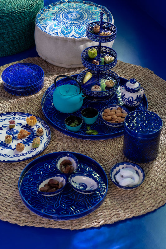 MAJORELLE - Plateau cake metal bleu H-56 cm