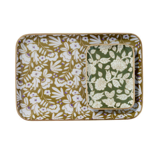IRIS -Plateau à fleurs en métal émaillé - Curry