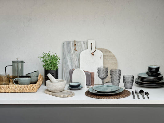 TESS Planche à découper Ronde Corde marbre blanc et noir / argent