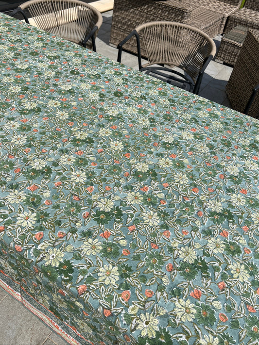 MEERA - Nappe indienne à imprimé floral bleu vert