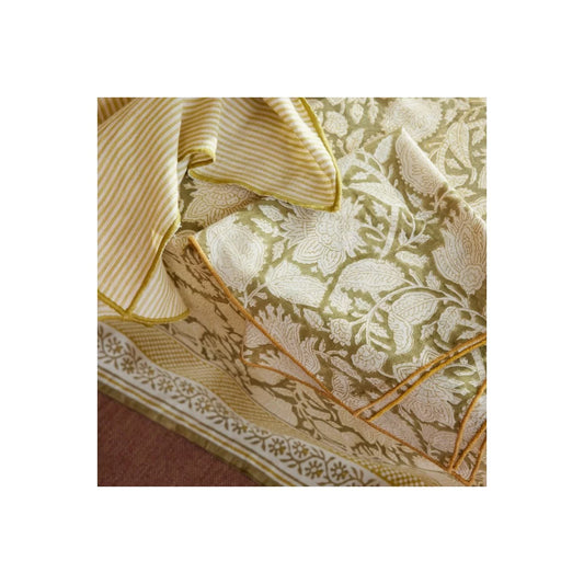 LOTUS - Nappe indienne à imprimé floral Absynthe