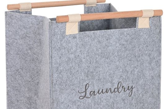 Panier à linge en feutre poignées bois