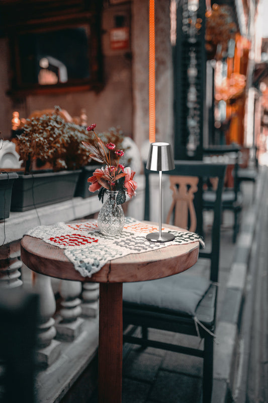 LAMPE DE TABLE LED - Extérieur nickel brossé H 27,5 cm