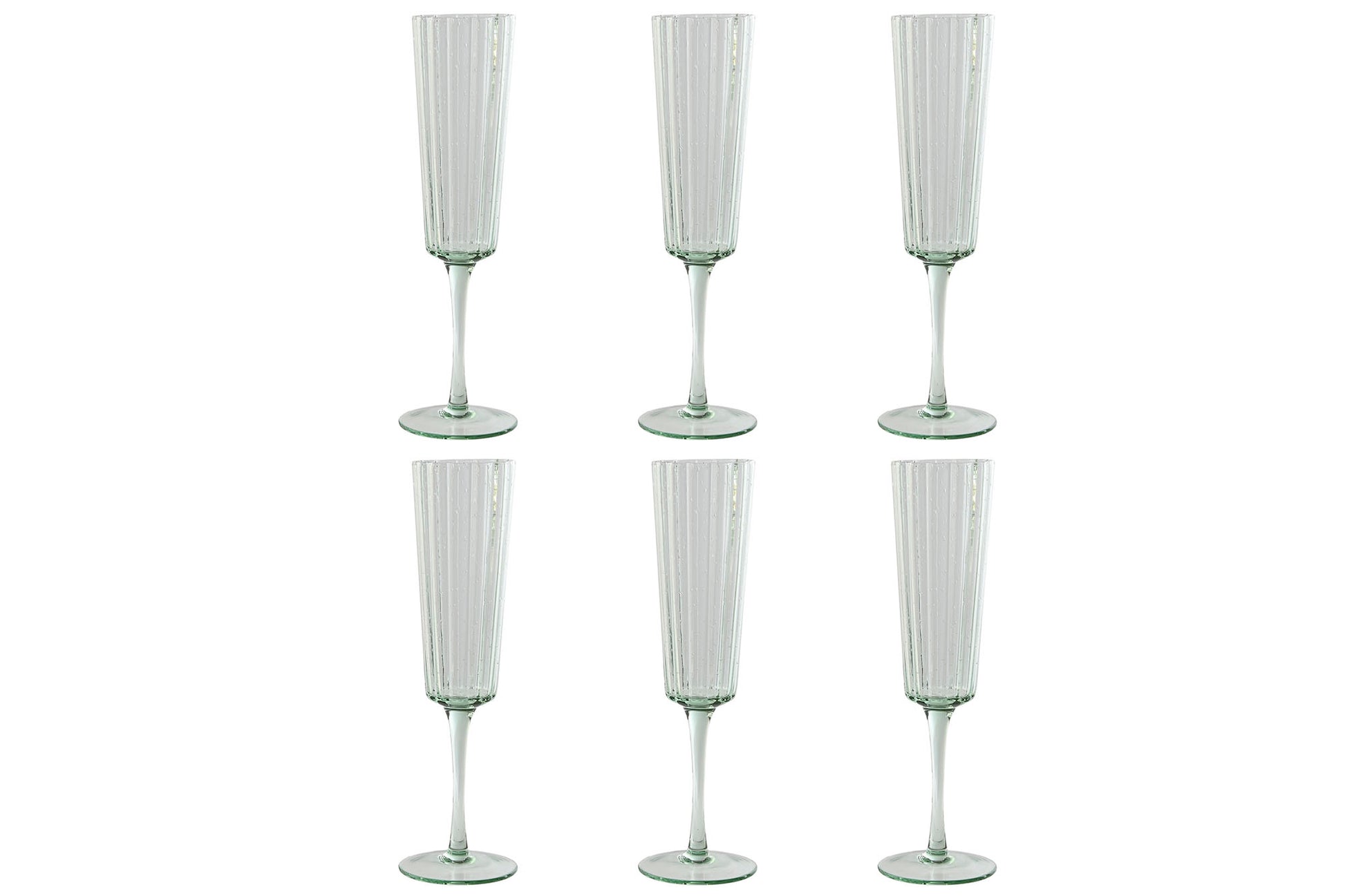 Ces flûtes en verre bullé vert de 230 ml, dotées d'une délicate bordure en forme de fleur, apportent une touche de fraîcheur et d'élégance à chaque dégustation. Leur design unique valorise vos boissons tout en offrant une prise en main confortable. Idéales pour célébrer vos moments spéciaux avec style et convivialité.