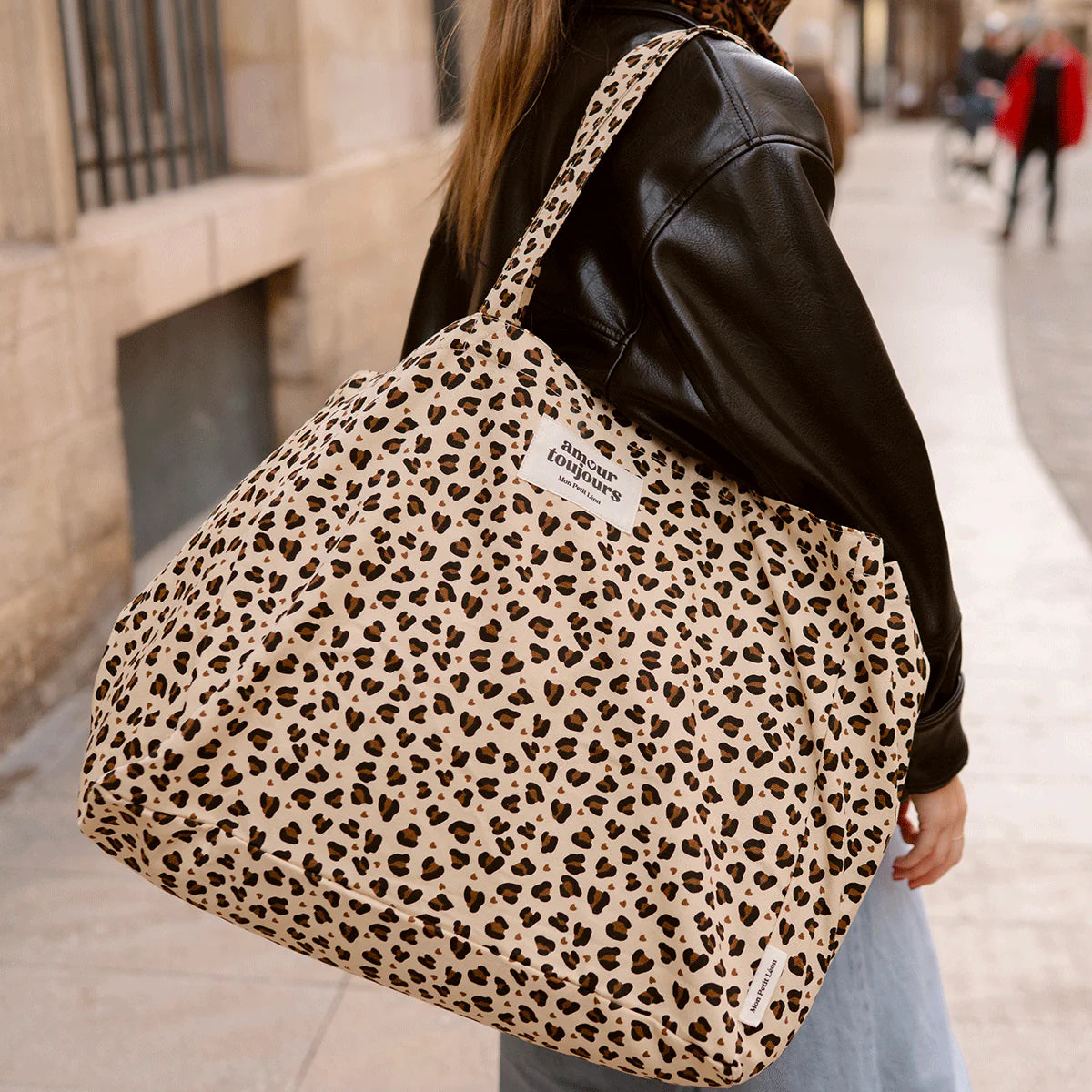 CABAS XXL Léopard Coeur Amour Toujours