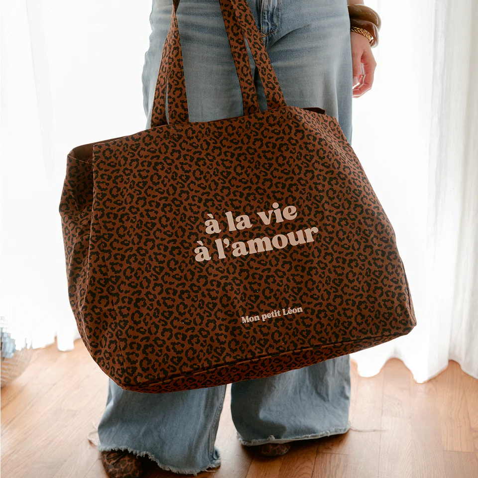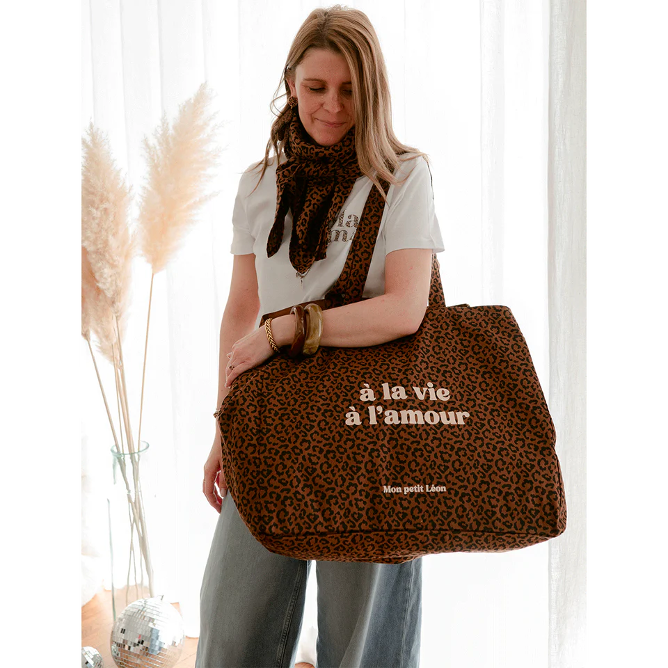CABAS XXL Léopard foncé A la vie à l'Amour
