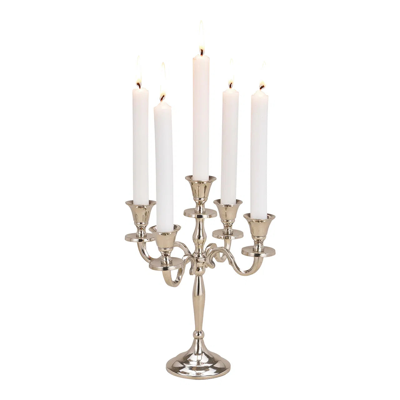 Bougies non fournies. Chandelier 5 branches en métal argenté (L/H/P) 23x27x23cm