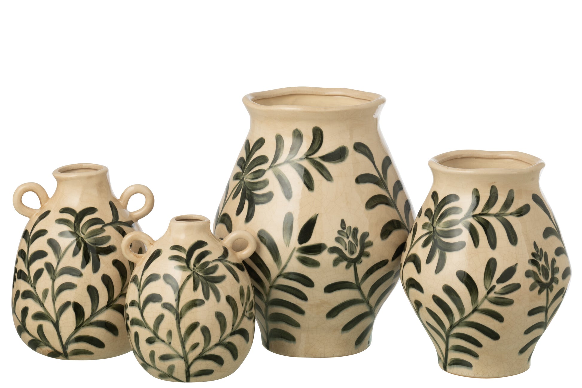 LEAVES Grand Vase en grès feuilles vert foncé/beige