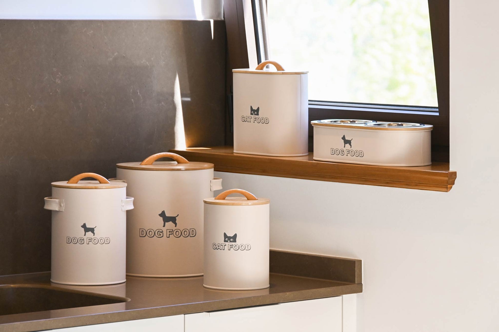 POT NOURRITURE CHAT - Métal beige et couvercle bambou 2,5 L